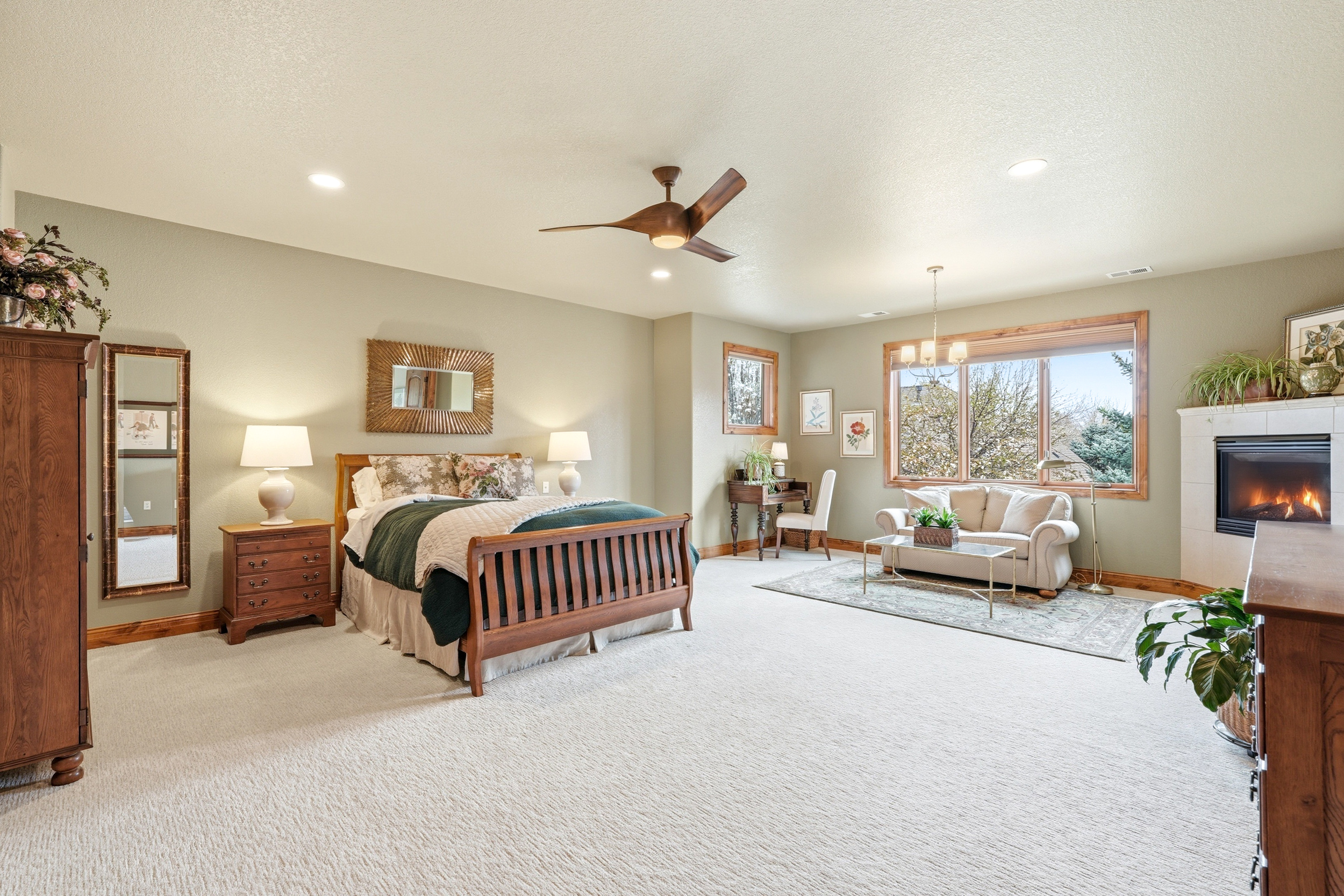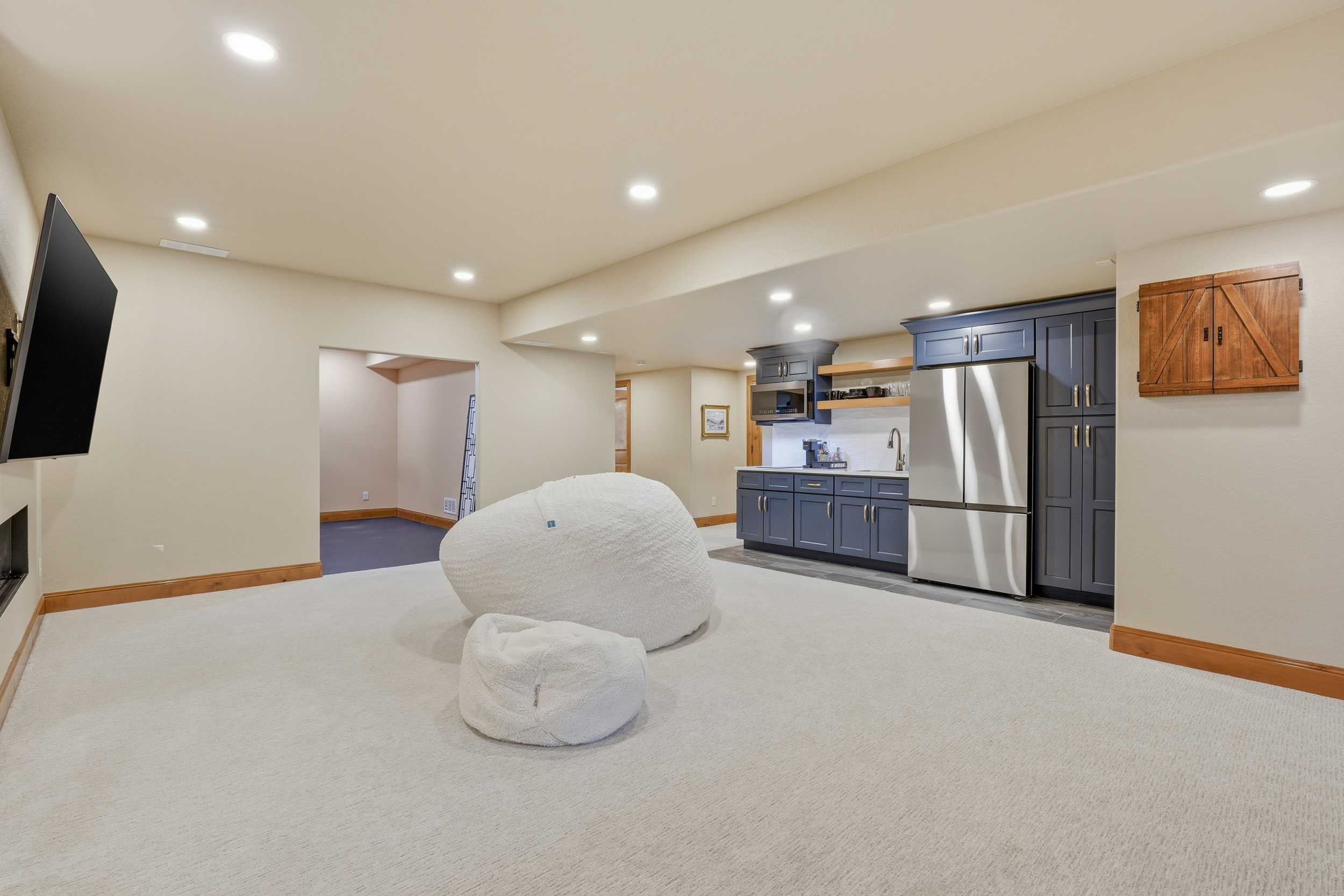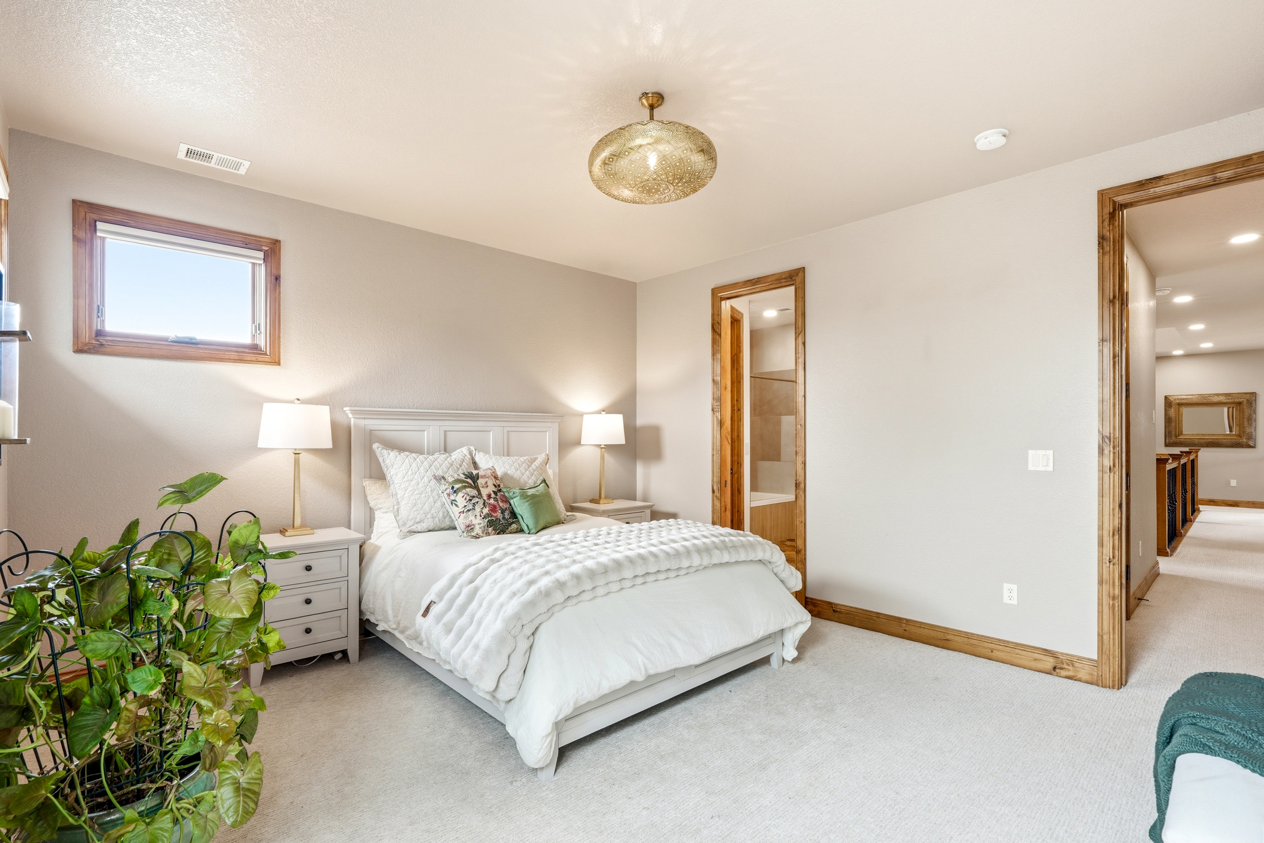 Finishing out the main floor is a generously sized bedroom with its own attached bath. Going upstairs, you will find four more bedrooms -- the regal primary suite, with truly spa-like finishes, a private bedroom with en suite bath, and two more bedrooms conjoined with a jack-and-jill style bath -- fully renovated & updated, and featuring a soaking tub. Enjoy a conveniently placed laundry shoot, as well as whole-house vacuum hookups in the upper level. Moving down into the newly finished basement, find two MORE bedrooms, an updated bathroom, as well as a proper exercise/workout space & a game room. Plenty of storage is also found in the lower level. The large, 3-car attached garage comes fitted with an EV charger. This opportunity in Rainbow Ridge does not come often -- strike while the iron is hot!